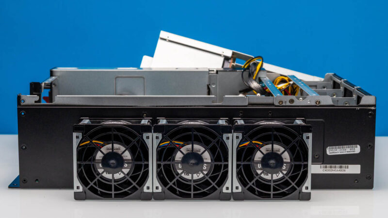 Opening the top cover immediately reveals the server’s highly integrated space utilization. The cooling fans inside the chassis are hot-swappable, facilitating maintenance without affecting system operation.