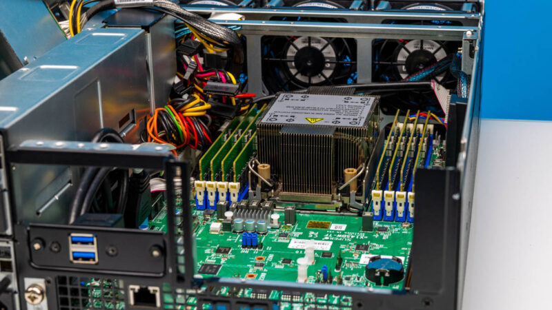One noteworthy design detail is visible in the system topology: the processor socket is located at the bottom of the machine . This layout is uncommon in conventional servers, but it has become a design feature in the E403 series.