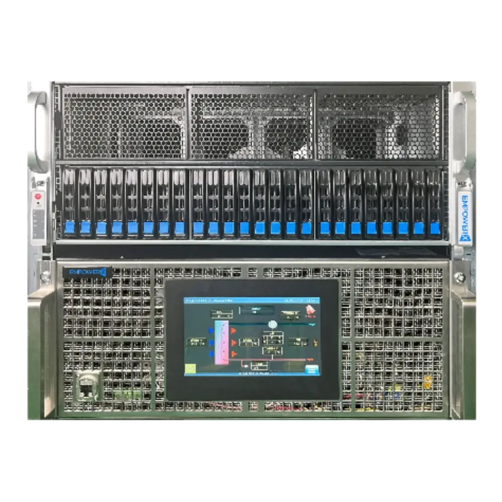 CDU | Cooling capacity ≥6 kW; coolant supply temperature ≤38°C (ambient 25°C), flow rate 8 LPM, pump head 0.5 bar with dual-pump redundancy; equipped with a dedicated Cooltera liquid-cooling controller displaying temperature, loop pressure, pump speed and other parameters; airflow 600 CMH; full-load noise ≤60 dB. |