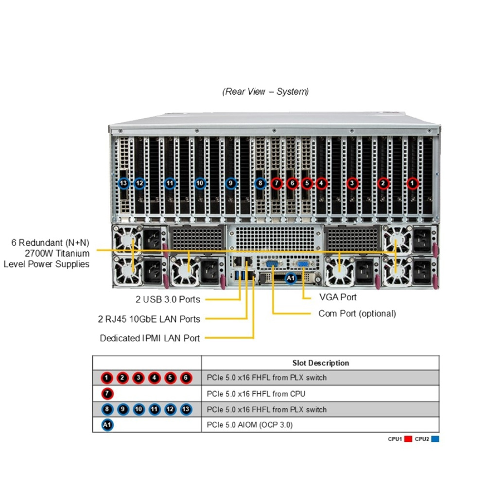 | PCI-Express (PCIe) Configuration | Default:9 PCIe 5.0 x16 FHFL double-width slots Option A:10 PCIe 5.0 x16 FHFL double-width slots |